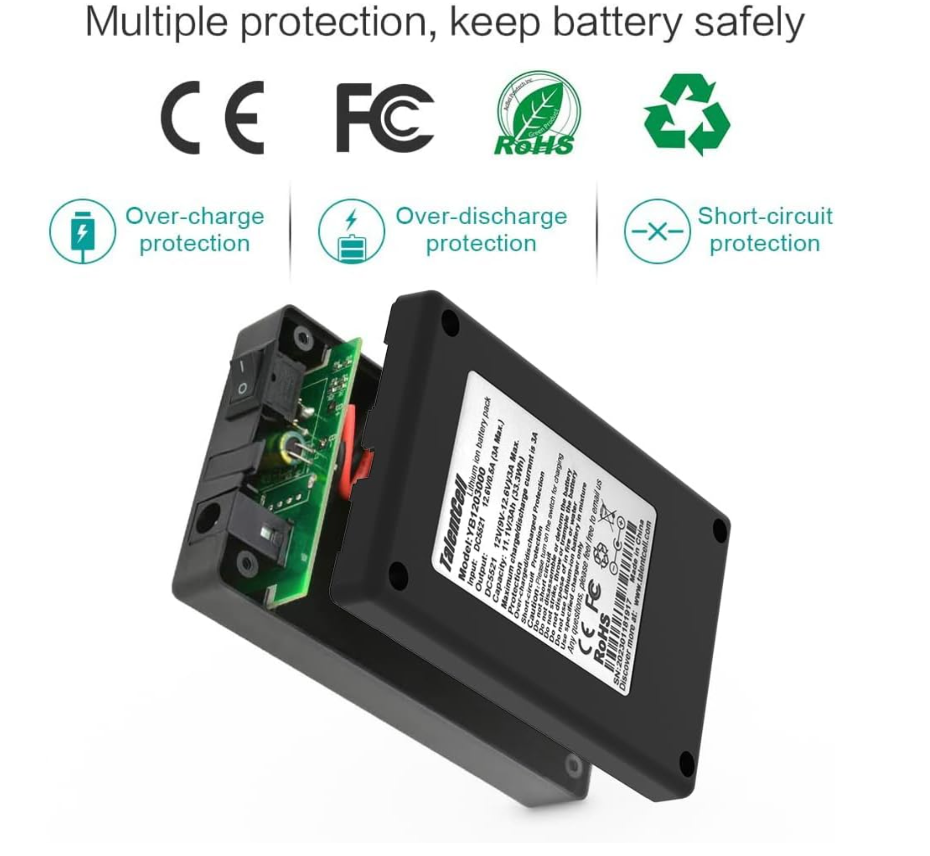 🔌 Complete Kit – Includes a 12.6V/0.5A wall charger and DC splitter cable for quick setup.